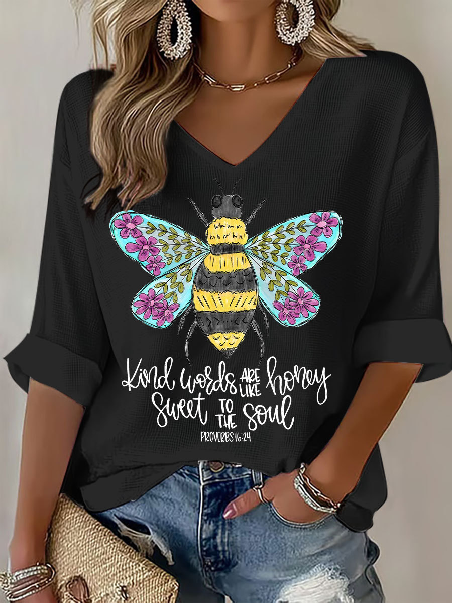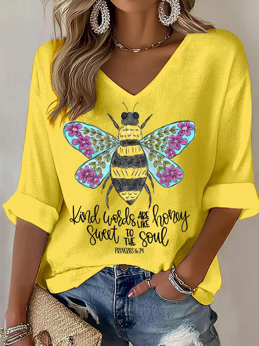 Women's Kind Words Are Like Honey Waffle Print Casual T-Shirt