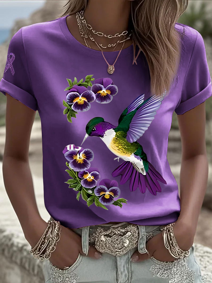 Women's Pansy Hummingbird Alzheimer's T-Shirts
